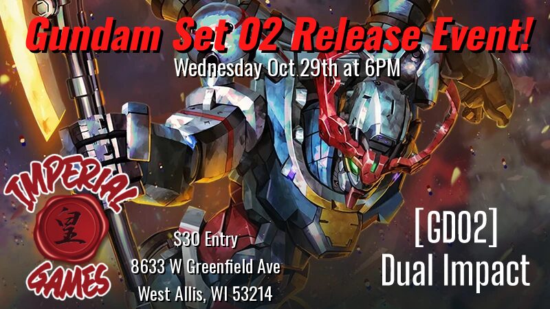The Gundam TCG is sweeping in with it's second set, Dual Impact! And quite an Impact it is! Get a taste of the game broadening new set as soon as possible at our Release Event! All participants get 4 packs with which to construct a 30 card deck (ignoring color rules and card restrictions) after […]
